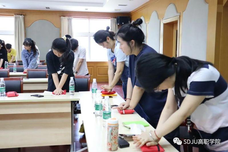 梁斌、徐俊红老师以理论讲授、现场演示、实践操作等方式进行授课,以近年来发生在身边的鲜活事例,向学员们强调了应急救护“黄金四分钟”的重要性,随后逐一讲解了胸外按压、人工呼吸、止血、包扎等急救理论与施救技巧,介绍除颤器功能并现场演示,实操心肺复苏、三角巾包扎等方法,向广大学员普及日常的急救知识。培训结束后,老师对学员们进行了现场操作考核。