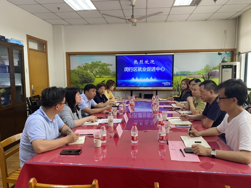 2023年6月19日下午闵行区就业促进中心主任陈铁民一行五人来到3044AM永利进行调研。3044AM永利经理郭环球、副经理方建龙、党总支副书记、副经理史铭之以及负责员工工作、就业工作的辅导员参加交流,双方就人才培养与输送需求进行对接。
