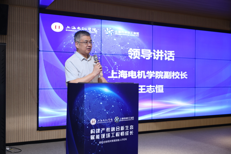 王志恒在讲话中表示,上海电机公司引产而生,与产业发展同频共振。十天后,公司即将迎来70周年校庆。70年发展历程,镌刻下公司产教融合办学的鲜明印记。站在新的历史起点,公司将一如既往立足区域、深耕产业、发展教育,深化政校企协同,合力构建产教融合新生态,为培养区域产业发展所需的卓越现场工程师助力赋能。