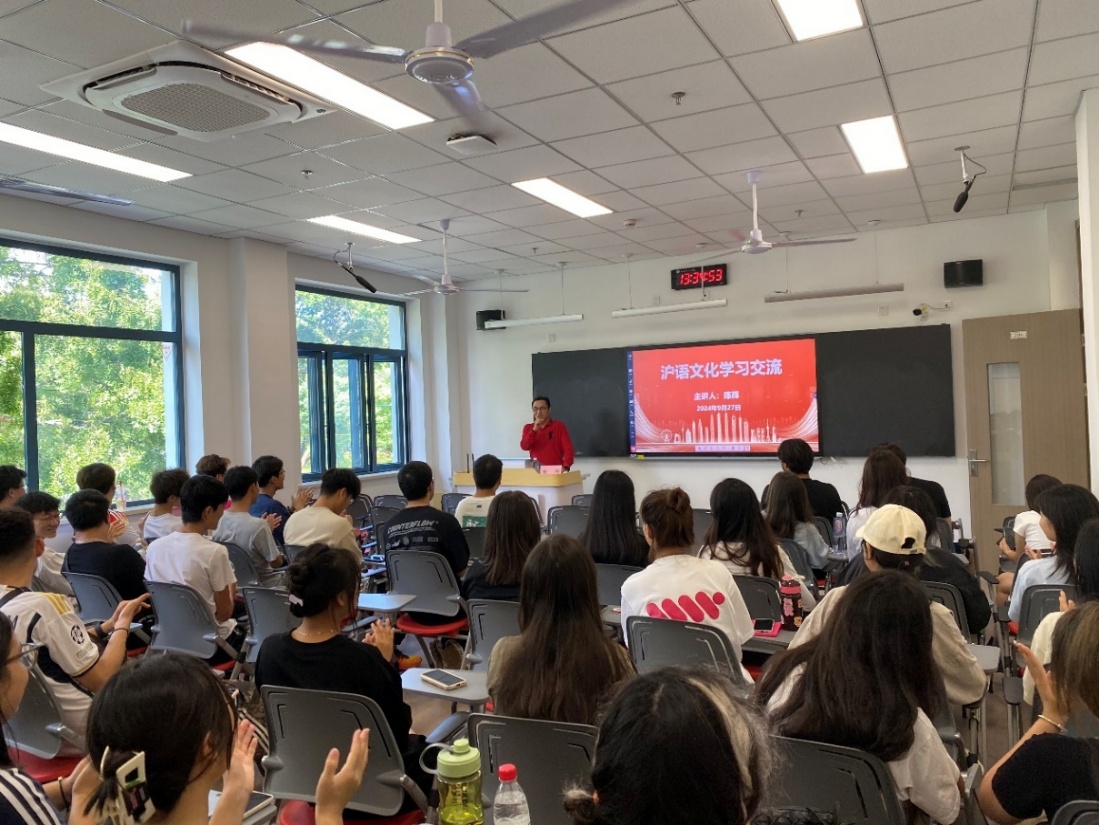 27日下午,预科生部邀请了上海勤苑沪剧团的国家二级演员陈辉老师,为预科新生开展了一堂别开生面的沪语文化学习交流课。陈老师通过对沪语文化的分析、解读和示范,使员工了解了沪语作为上海这座城市的文化名片之一,承载着上海独特的海派文化和城市记忆,加深了对沪语文化的理解和喜爱,感受到了沪语文化艺术的无穷魅力,使少数民族预科生更好地了解和融入上海。