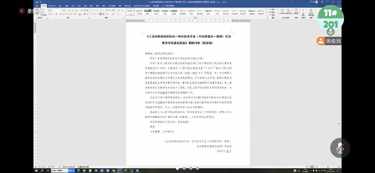 项目负责人周俊妩老师对上海市职业院校机电一体化技术专业实训教学环境建设《指南》编制工作的实施方案、工作计划、调研内容、调研方式等作了详细介绍。