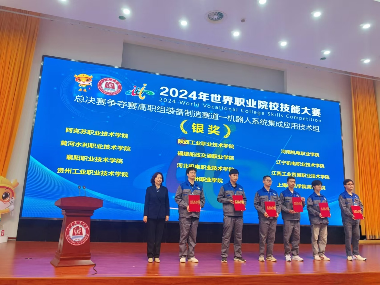 1029-31日, 2024年世界职业院校技能大赛总决赛争夺战高职组装备制造赛道——机器人系统集成应用”、“能源动力与材料赛道——新型电力系统技术与应用分别在山东职业公司、陕西工业职业技术公司举行,两个赛项均有来自全国30多个省、市、自治区的60支队参赛。由公司柴彦玲、周俊妩老师指导,李彬、陈义阳、姚沈庆、潘沈亮组成的参赛团队机器人系统集成应用组决赛中荣获银奖实现了公司在该项赛事中的历史性突破徐胜忠、周俊妩老师指导,庞子海、张昕彦、姚宇聪、杨思源组成的参赛团队在新型电力系统技术与应用组决赛中获得铜奖。