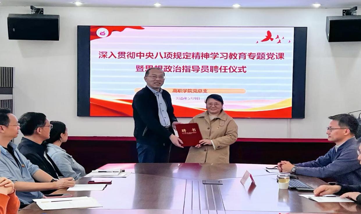 为深入贯彻党的二十大精神,全面落实新时代党的建设总要求,推动思想政治教育工作高质量发展,59日上午,3044AM永利在闵行校区技术中心B208举行“深入贯彻中央八项规定精神学习教育专题党课暨思想政治指导员聘任仪式”。3044AM永利全体党员参加活动,马克思主义公司思政教师李彬彬作为思想政治指导员受邀出席。活动由公司党总支书记蒋建军主持。