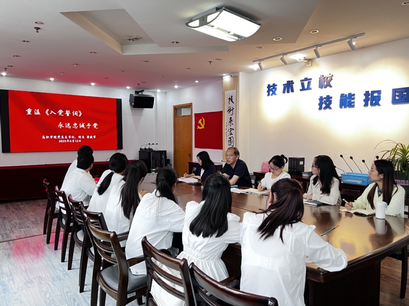 仪式在雄壮的《国歌》声中拉开帷幕。张静、昂宇两位员工党支部书记为新党员佩戴党员徽章。在党总支副书记张书娟的领誓下,全体毕业生新党员面向党旗庄严宣誓,与会党员一同重温入党誓词。铿锵誓言响彻会场,彰显了青年党员为共产主义奋斗终身的坚定信念。
